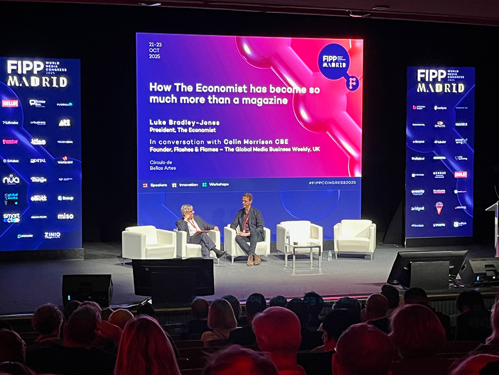Uno de los temas centrales del día fue la transformación de los medios ante el cambio permanente en los hábitos de consumo. En este contexto, Luke Bradley-Jones, presidente de The Economist, subrayó la necesidad de amplificar canales, diversificar formatos y adaptarse a la evolución de las audiencias para garantizar un crecimiento sostenible. Su intervención puso de relieve que solo los medios capaces de transformarse pueden mantener relaciones sólidas con sus comunidades lectoras.