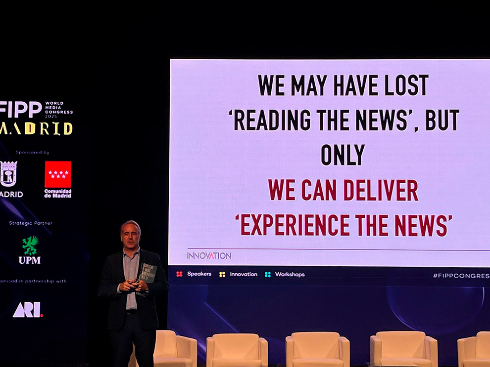 La jornada inaugural puso el foco en la fuerza de la comunidad internacional que conforma la FIPP y en la necesidad de compartir ideas, valores y conocimiento para fortalecer el futuro de la industria. Este mensaje se reflejó en la intervención de Alastair Lewis, CEO de FIPP, quien recordó además que es la tercera vez que el congreso se celebra en Madrid (tras las ediciones de 1929 y 1985).