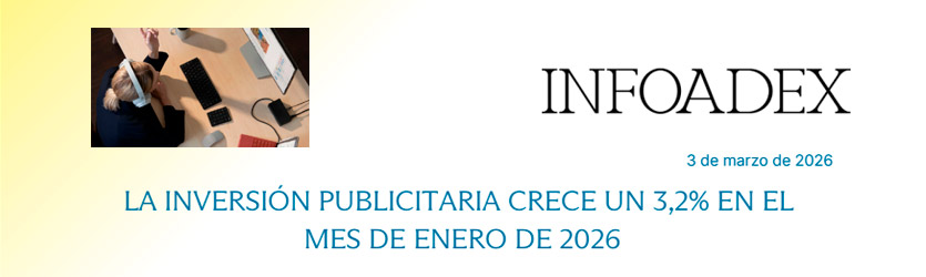 Infoadex ha publicado los datos correspondientes a la inversión publicitaria del mes de enero del 2026 que, en cifras globales, ha alcanzado los 438,3 millones de euros, un 3,2% superior que en el periodo equivalente del año anterior.